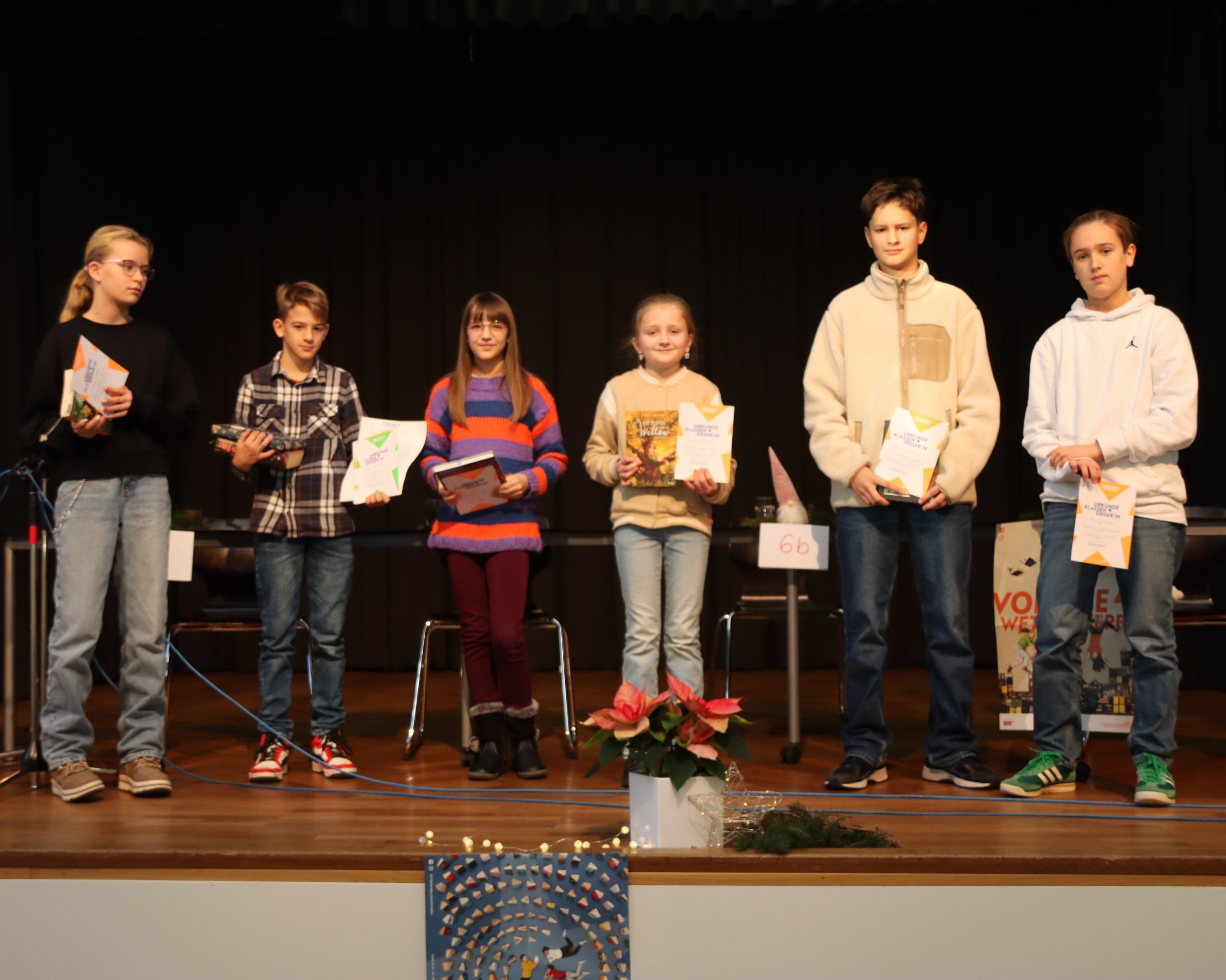 Sie lasen überzeugend einen selbstgewählten und einen vorgegebenen Text und wurden von der Jury bewertet. Der Gewinner, Max aus der 6b, darf sich im nächsten Schritt im Stadtentscheid mit den besten Vorlesern der anderen weiterführenden Kaufbeurer Schulen messen.