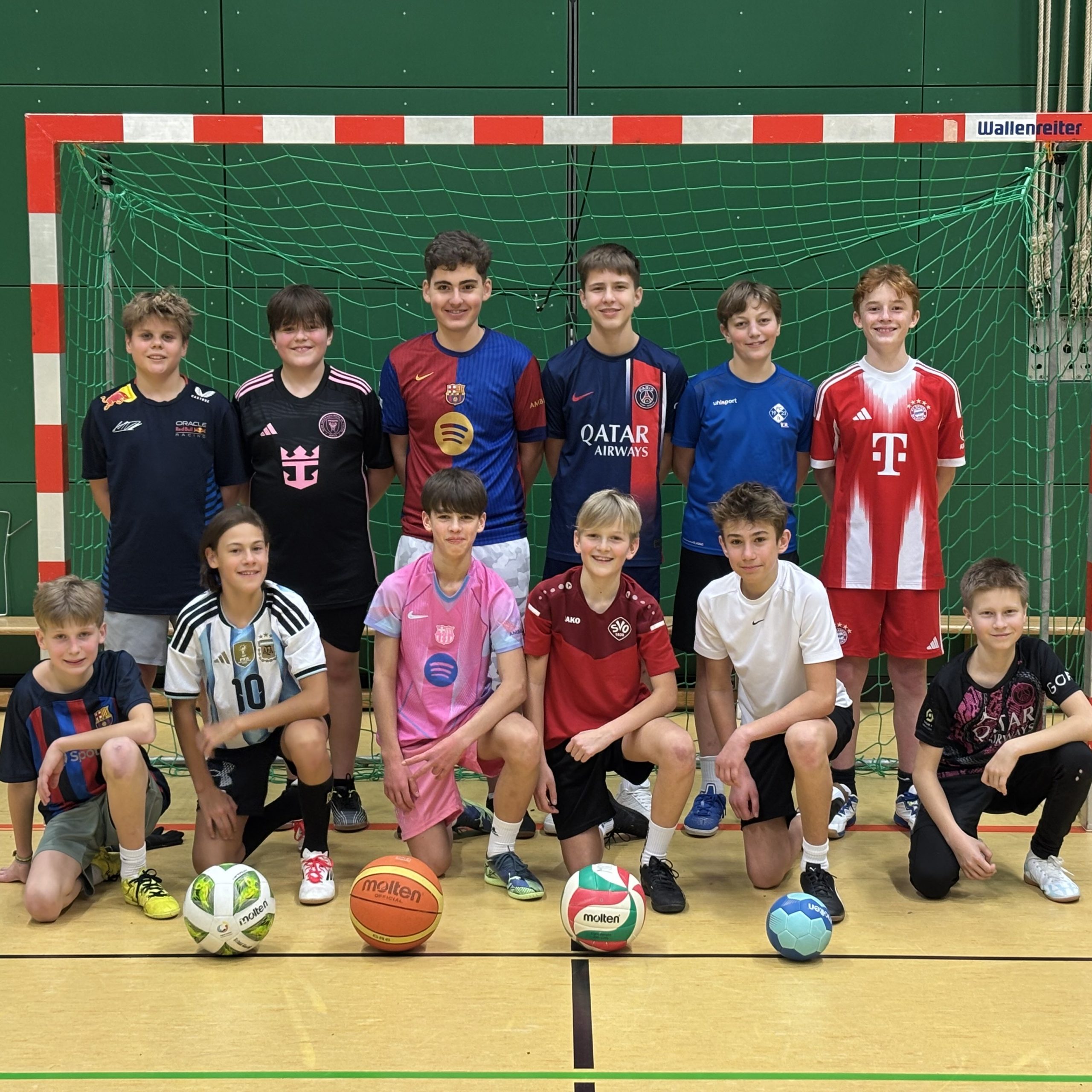 Zusammen mit ihrem Sportlehrer Fabian Fleschutz hatten einige Jungen der 7. Klassen viel Spaß bei einer Langen Nacht des Sports. Nach verschiedenen Ballsportarten wie Fußball, Volleyball und Basketball und einer Pizza- und Spezi-Pause verfolgten die Sportler die Handball-EM bevor sie ausgepowert ihre Nacht in Schlafsäcken in der Turnhalle verbrachten.