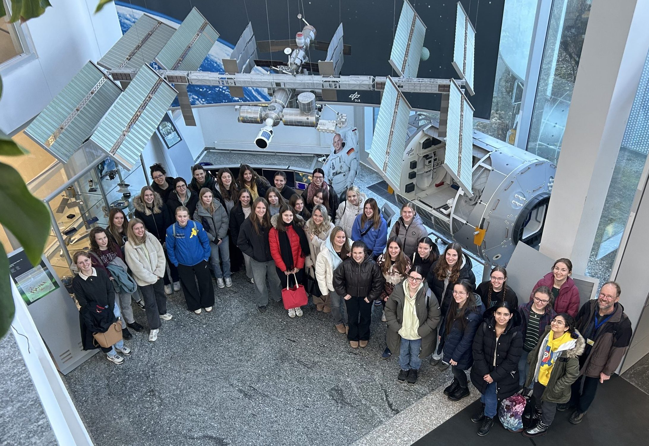 Schülerinnen der Oberstufenstufenkurse Physik und Chemie haben an einer Exkursion zum Deutschen Zentrum für Luft- und Raumfahrt (DLR) nach Oberpfaffenhofen teilgenommen. Dr. Johannes Herzog, der zum Thema Weltraumschrott und Umweltschutz in der Raumfahrt forscht, stellte die Arbeitsbereiche des DLR vor und informierte über seinen Schwerpunkt. Zwei jüngere Kollegen berichteten über ihr Physikstudium und über ihren Weg ans DLR. Danach erhielt die Gruppe einen Einblick in das Kontrollzentrum zur Flugsteuerung und konnte direkt einen Blick in die ISS werfen.