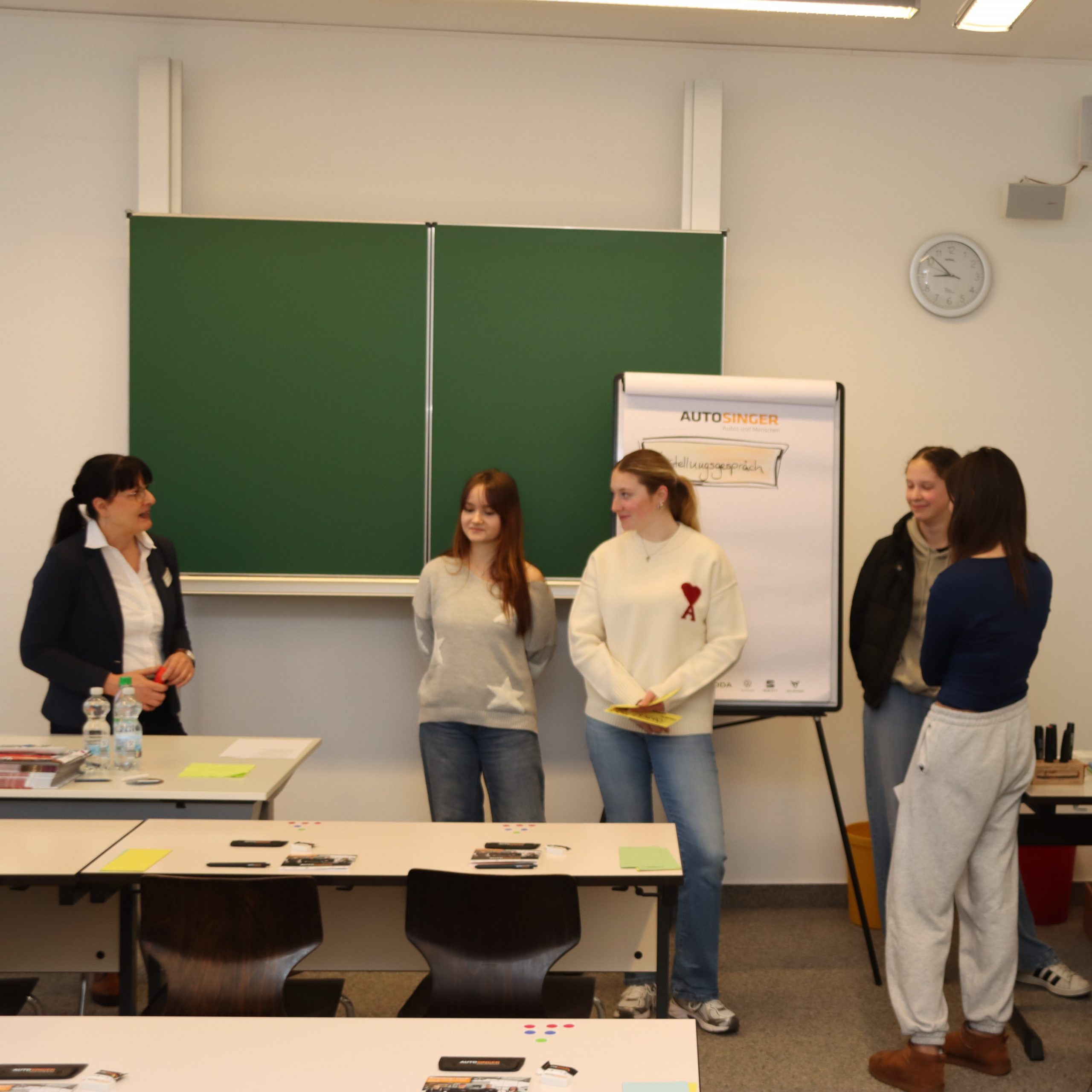Im Rahmen der beruflichen Orientierung für die Oberstufe nahmen die Schülerinnen der Q12 an einem Bewerbertraining teil. Sie lernten wie eine Bewerbungsmappe gestaltet werden soll und wie man sich auf ein Vorstellungsgespräch vorbereitet. Mit Personalleitern der Sparkasse Allgäu, der Hirschvogel GmbH sowie Auto Singer wurden solche Gespräche als Rollenspiel geübt: Eine gute Gelegenheit zur Vorbereitung auf einen beruflichen Werdegang!