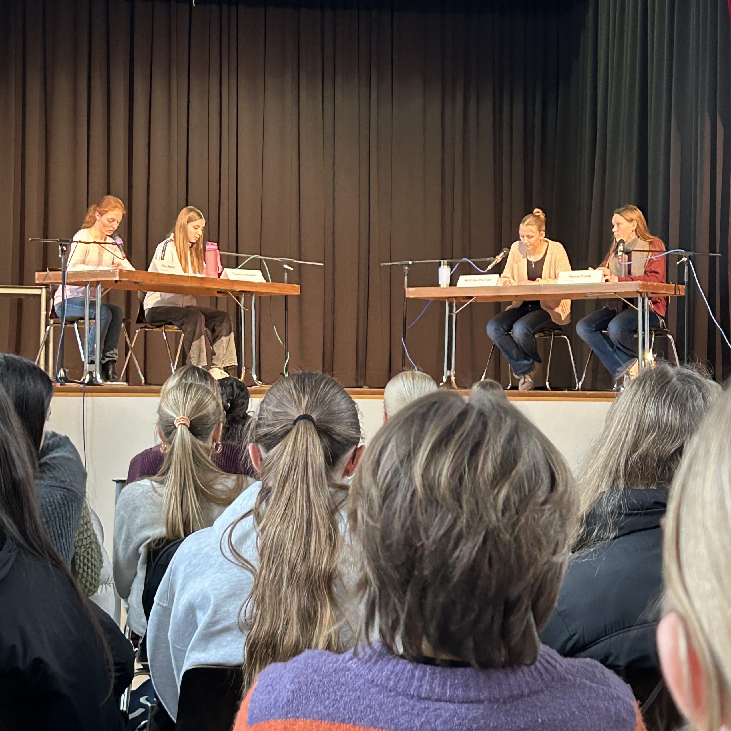 Finalistinnen der Schulwettbewerbe von Jugend debattiert aus Garmisch, Sonthofen, Weilheim, Icking, Dießen und des Marien-Gymnasiums traten in zwei Debatten gegeneinander an. Mal ging es um Dialekt in Schulen und dann um den Ausschluss extremistischer Parteien aus Diskussionsrunden. Helene aus der 9a schaffte es auf den 3. Platz. Organisiert wurde die Veranstaltung von Frau Müller und Herrn Schmitz. Viele Helferinnen standen bei der Verpflegung der etwa 100 Gäste zur Verfügung. Ein Dank geht auch an die Frank-Hirschvogel-Stiftung für die finanzielle Unterstützung.