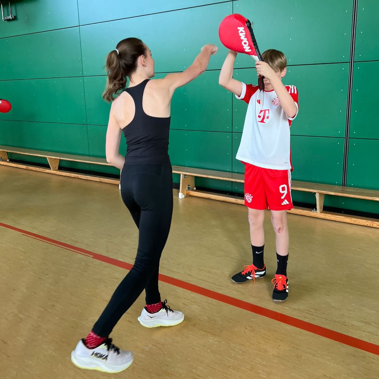 Mehrere Freitagnachmittage sind für unsere Schülerinnen und Schüler der 6. Klassen vorgesehen, um mit Michaela Zimmermann, einer erfolgreichen Taekwondo-Athletin aus Kaufbeuren, einen Selbstverteidigungskurs zu absolvieren. Ziel ist, dass die Mädchen und Buben spielerisch lernen, sich in Notlagen besser zurechtzufinden.